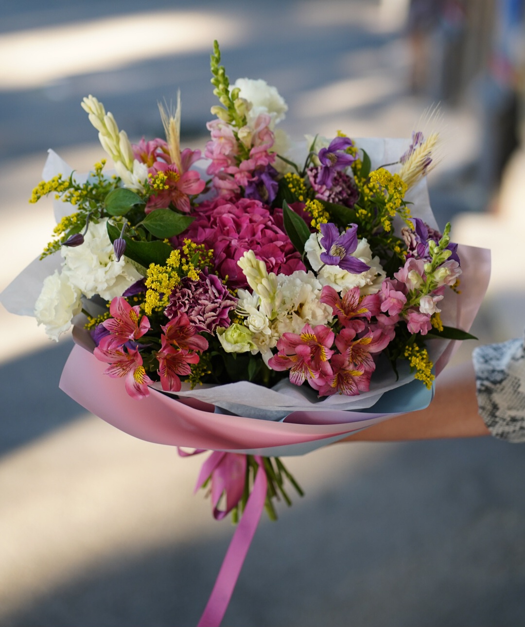 Buchet de flori elegant ce contine un mix de flori proaspete, de sezon. In functie de stoc si de sezon, produsele pot suferi mici modificari. Pentru mai multe detalii, ne puteti contacta telefonic.